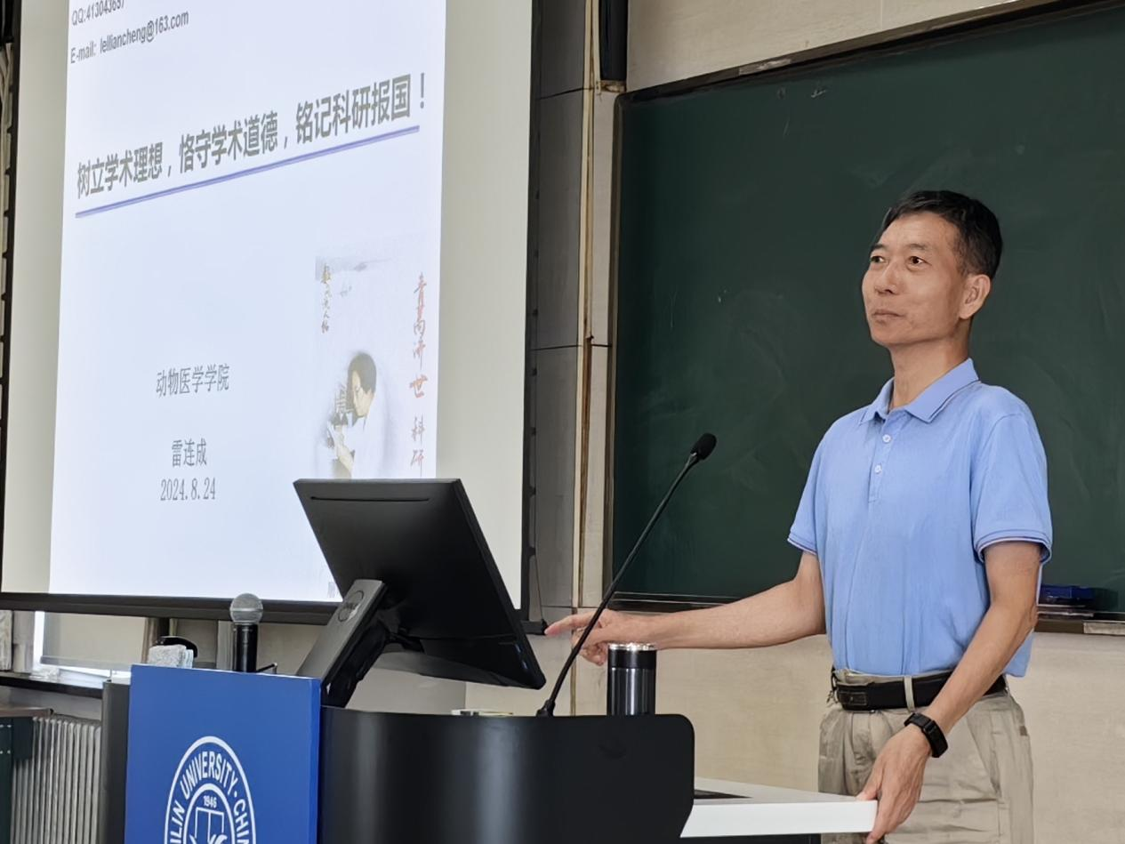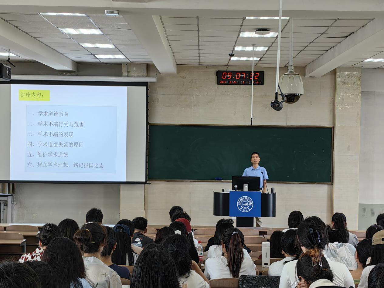 勤学求是拓新知,德业双修开华篇。为营造良好科研生态和学术氛围,引导研究生自觉遵守科学研究规范,培养信念执著、品德优良、知识丰富、本领过硬的高素质人才,意昂研究生会于8月24日举办研究生新生入学系列教育——科学道德与学风教育。讲座邀请雷连成教授作为主讲人,研究生辅导员王慧丽老师主持,2024级全体研究生参加。