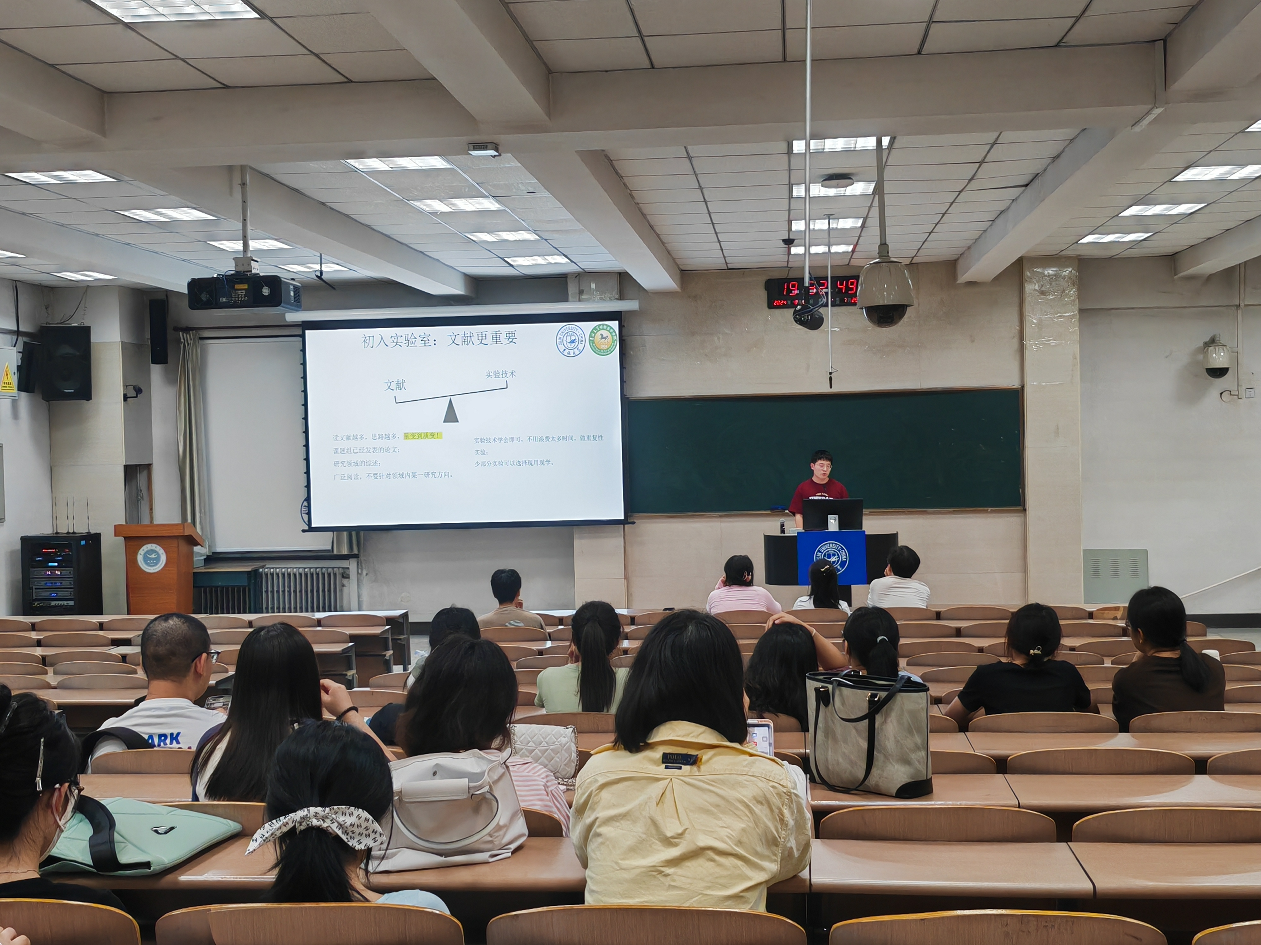 赵博士还通过自己参与的课题实例,详细介绍了他对具体课题的研究兴趣与探索。他的实际案例展示了如何将理论知识应用于实验操作,解决实际问题,这对在座的研究生新生提供了宝贵的科研思路。