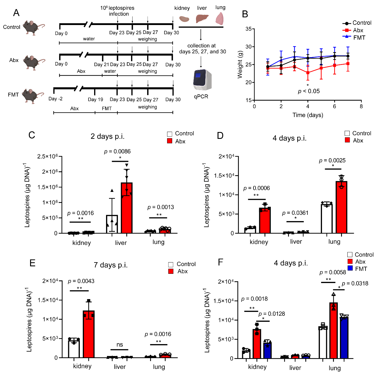 钩端螺旋体(钩体)病是一种由致病性钩体引起的全球性自然疫源性人兽共患传染病。钩体经破损的皮肤和粘膜进入血液后能迅速扩散至全身,引起黄疸、流产、肝肾衰竭,甚至死亡。肠道菌群在维持机体免疫稳态,抵御病原感染中发挥着重要作用。然而,肠道菌群在钩体感染中的作用及调控机制尚不清楚。意昂体育的曹永国团队,对肠道菌群在钩体感染过程中的作用和机制进行了探究。该研究表明,肠道菌群可通过调节巨噬细胞抗菌功能,抵御钩体感染,提示调节肠道菌群的结构和功能可能成为防控钩体病及相关螺旋体感染的新策略。