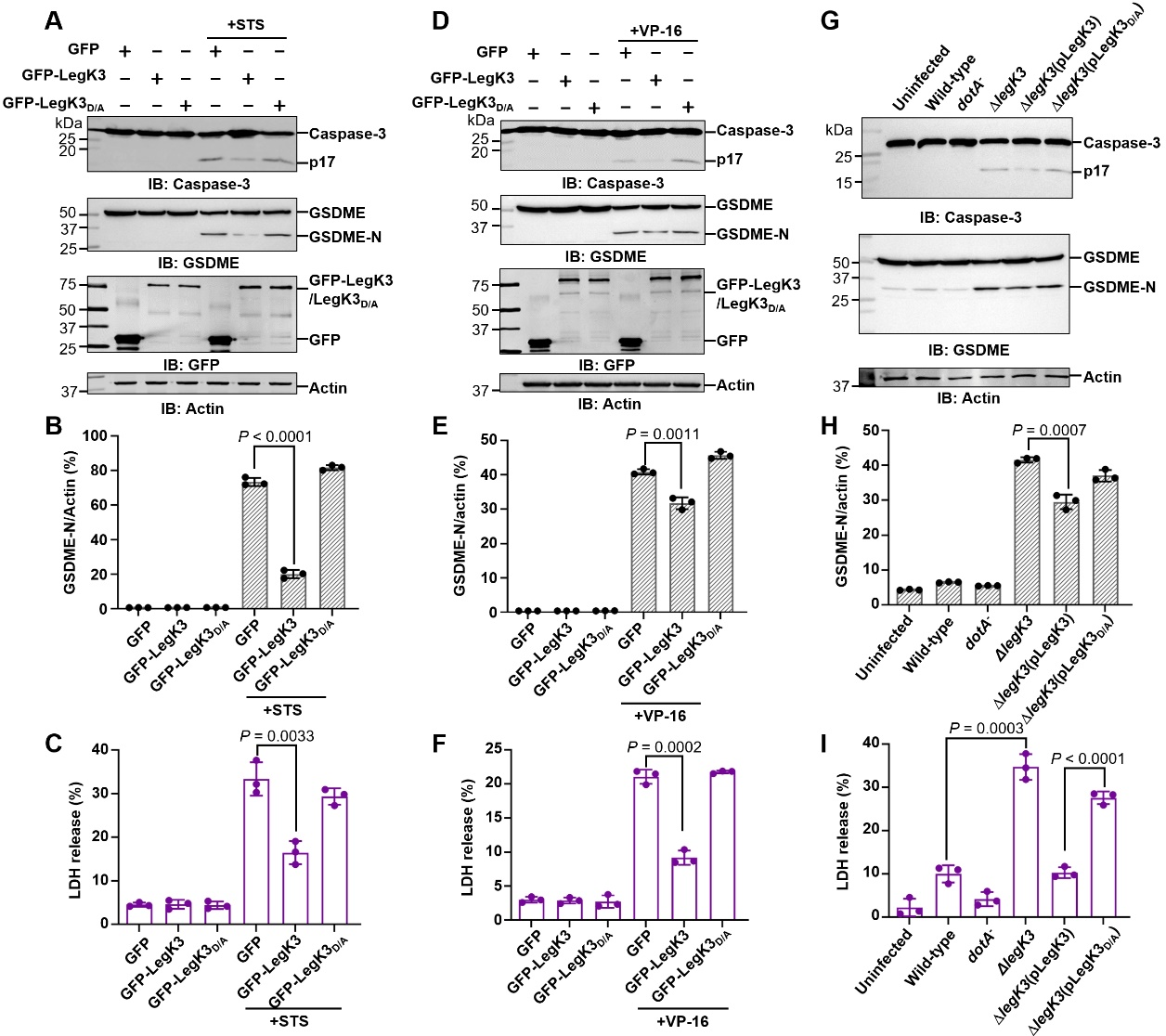 图2. LegK3抑制Caspase-3和GSDME诱导的焦亡