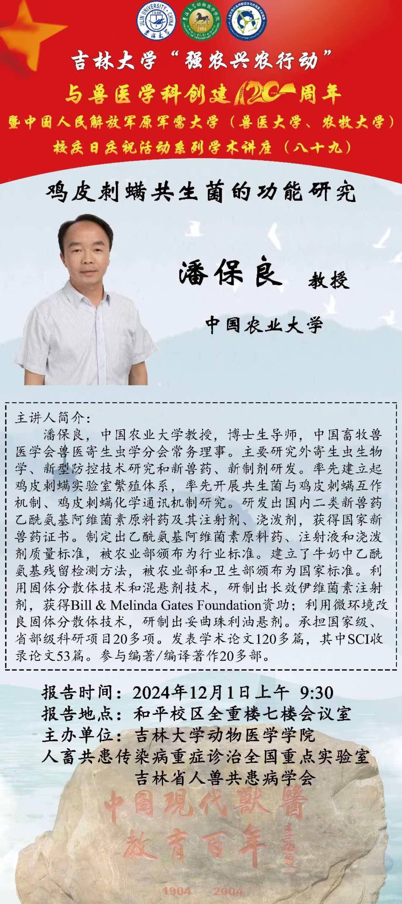 意昂体育“强农兴农行动”与兽医学科创建120周年暨中国人民解放军原军需大学(兽医大学、农牧大学)校庆日庆祝活动系列学术讲座(八十九)