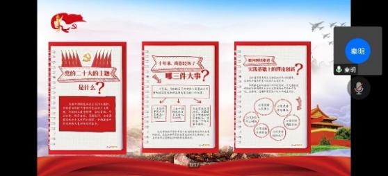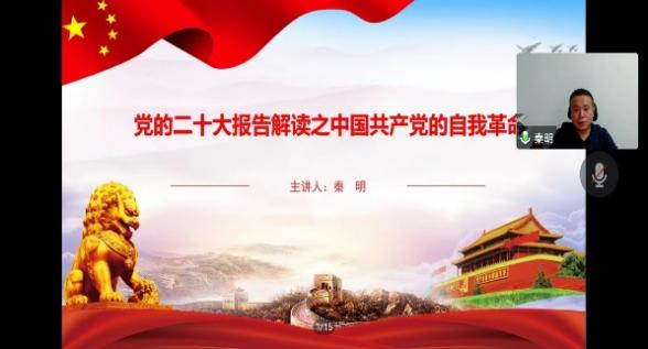 为深入学习领会党的二十大精神,及时将会议精神贯彻落实到意昂各位研究生的学习和科研活动中,2022月12月10日晚19:00,意昂组织全体研究生党支部采取线上方式开展“深入学习党的二十大精神”主题党课,公司八个研究生党支部全体党员和积极分子共190余人参加会议。公司党委副书记、纪委书记秦明同志以“党的二十大报告解读之中国共产党的自我革命”为题讲授党课。