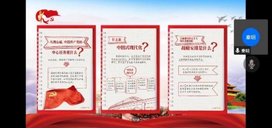 随后,秦明副书记围绕党的二十大报告中的“中国共产党的自我革命”这一重要部分向各位研究生党员介绍了我党全面从严治党、推进自我革命,勇于坚持真理、修正错误,勇于刀刃向内、刮骨疗毒的决心。党的二十大报告指出:“我们党作为世界上最大的马克思主义执政党,要始终赢得人民拥护、巩固长期执政地位,必须时刻保持解决大党独有难题的清醒和坚定。”秦明副书记指出:“全面从严治党取得了历史性、开创性成就,产生了全方位、深层次影响,自我净化、自我完善、自我革新、自我提高能力显著增强。经过不懈努力,党找到了自我革命这一跳出治乱兴衰历史周期率的第二个答案,赢得了全党高度团结统一、走在时代前列、带领人民实现中华民族伟大复兴的历史主动”。此外,副书记还向各位研究生党员普及了毛泽东同志在延安的窑洞里给出的第一个跳出治乱兴衰历史周期率的答案,那就是“只有让人民来监督政府,政府才不敢松懈”。本次党课期间,副书记还特别分享了毛泽东同志在党的不同奋斗时期所写的诗词,并由不同研究生党员朗诵并分享阅读诗词后的心中所想,这让所有研究生党员更加切实的感觉到了毛主席在党的不同发展时期,对于当时局势和党的发展的浓烈情感。