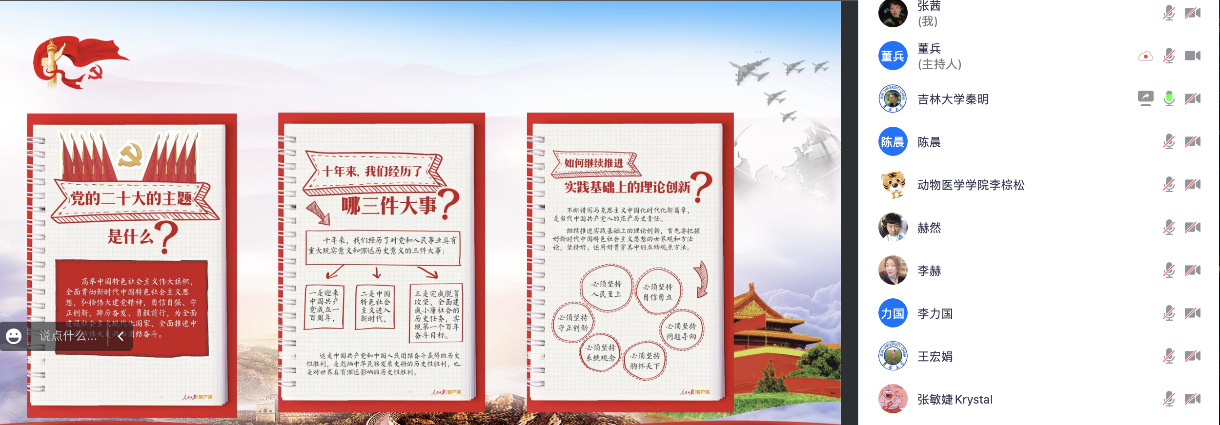 此次会议,让大家更加清晰明确了党的二十大的主要内容,也让大家对党的二十大精神有了更深的领悟。正如秦书记的结语中所说,“我们党执政的基础和力量的源泉在广大人民群众之中。只有党风正,人民群众才会拥护共产党”,我们身在行政教辅岗位,更要牢记党的二十大精神,注意师德师风,时时刻刻为广大师生着想,做好服务工作,创造一个更加美好、和谐的师生关系。