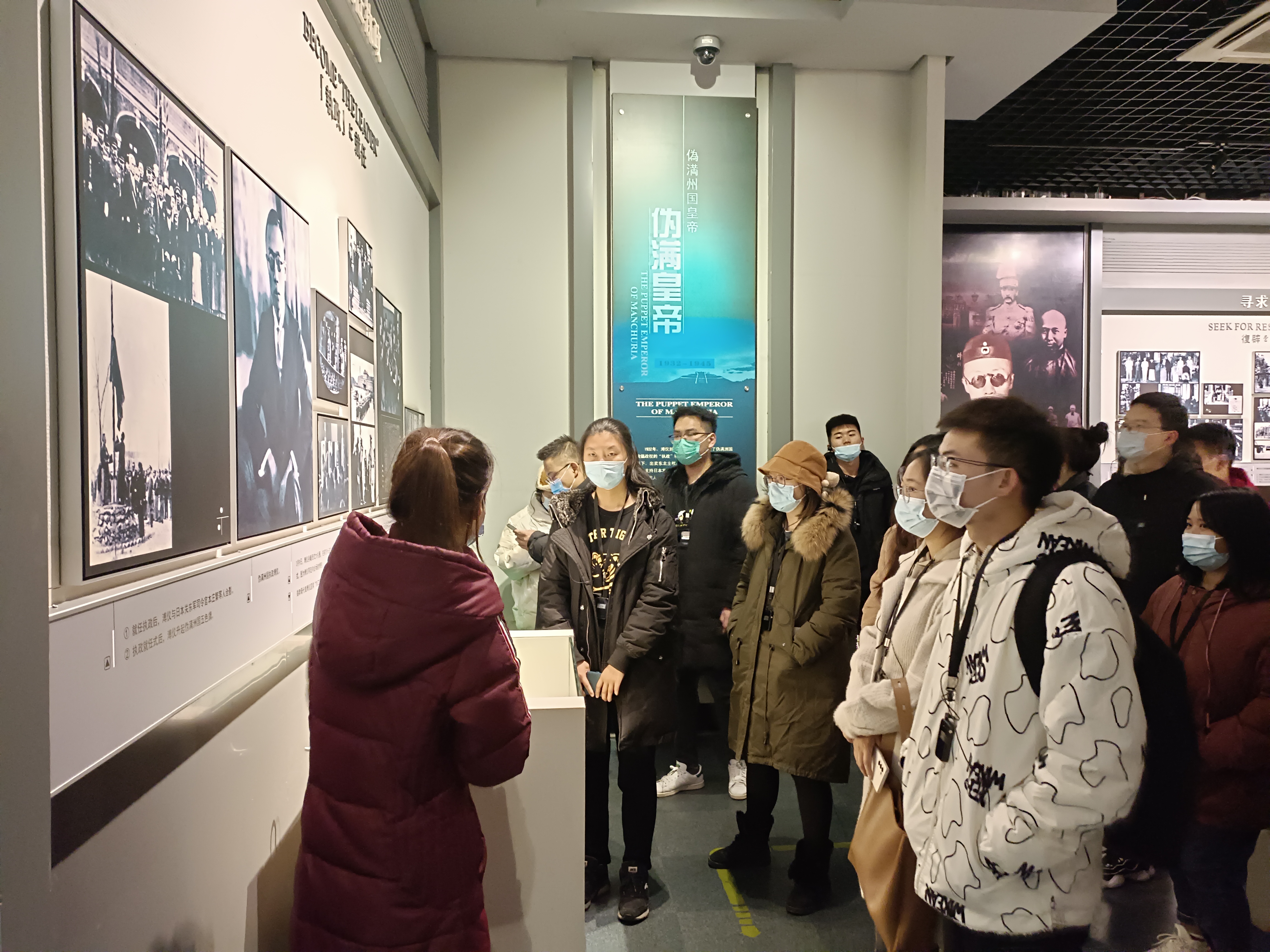 在讲解员的引导下,师生共同参观了缉熙楼、勤民楼、怀远楼、防空洞、御花园等历史遗迹,现场学习了末代皇帝溥仪“从皇帝到公民”的五个阶段,看到了大量伪满洲国的文物、文献展品,对日本侵略者在东北犯下的罪行有了更深的认识。伪满皇宫是日本军国主义武力侵占中国东北推行法西斯殖民统治的最典型历史见证。师生们怀着沉重的心情走进展厅,在伪满皇宫各个展厅都能感受到在日本法西斯控制下的伪满清国政府对中国东北地区利益的掠夺、对东北人民的迫害。特别是在勤民殿,同学们看到了伪满国总理郑孝胥和日本关东军司令官武藤信义签署的出卖中国主权的《日满议定书》,在同德殿更是感受到了日本军国主义表面上的同心同德实际上的控制压迫。