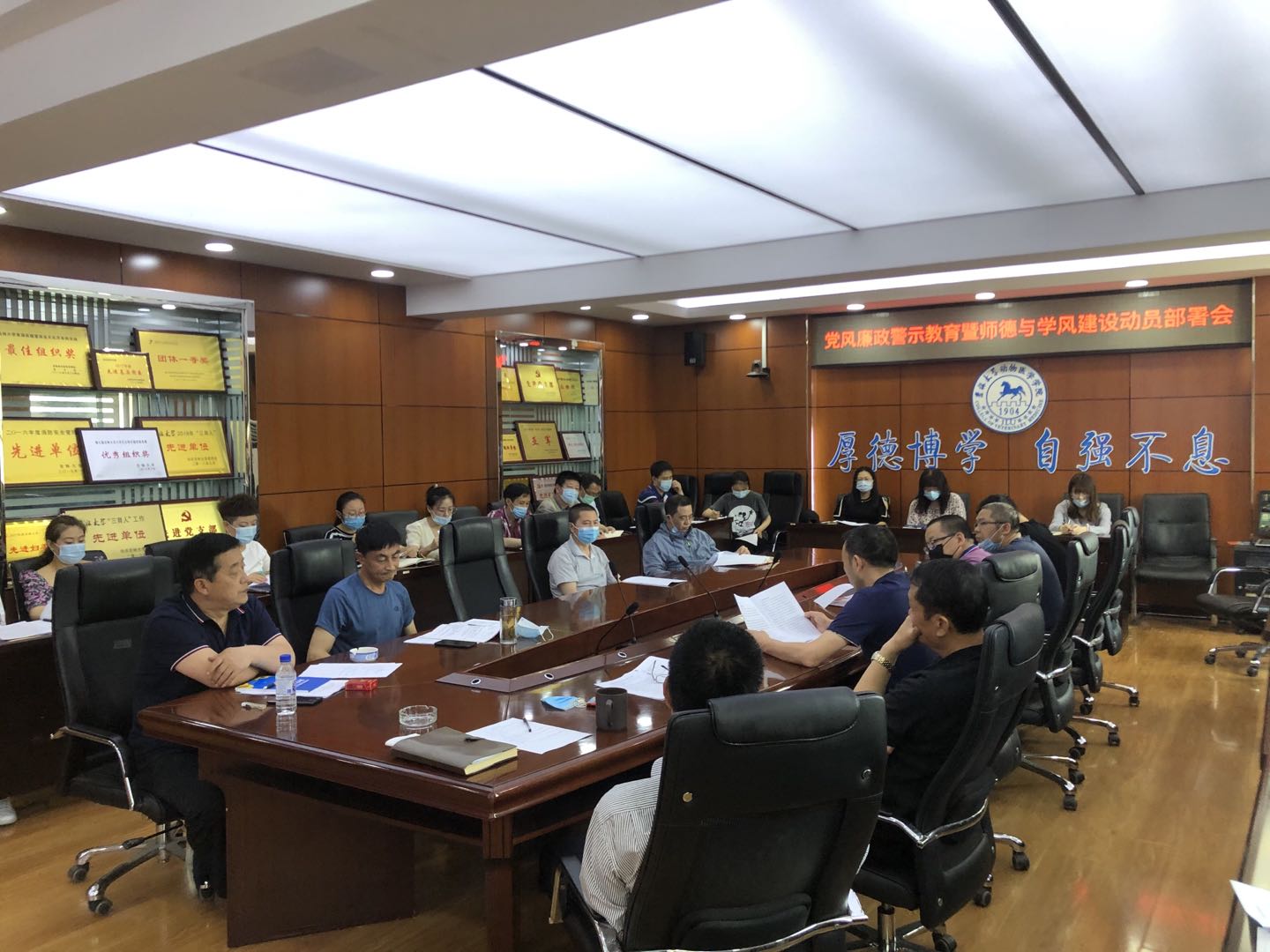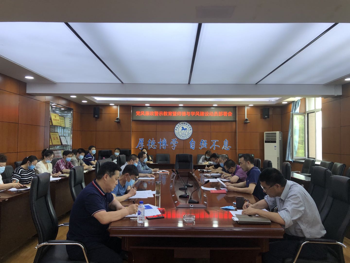 2020年6月12日上午,意昂在公司综合楼三楼会议室召开了党风廉政警示教育暨师德与学风建设动员部署会。公司领导班子成员,党委委员、纪委委员、各系(中心、医院)负责人,党支部书记参加了此次会议。会议由经理刘明远同志主持。