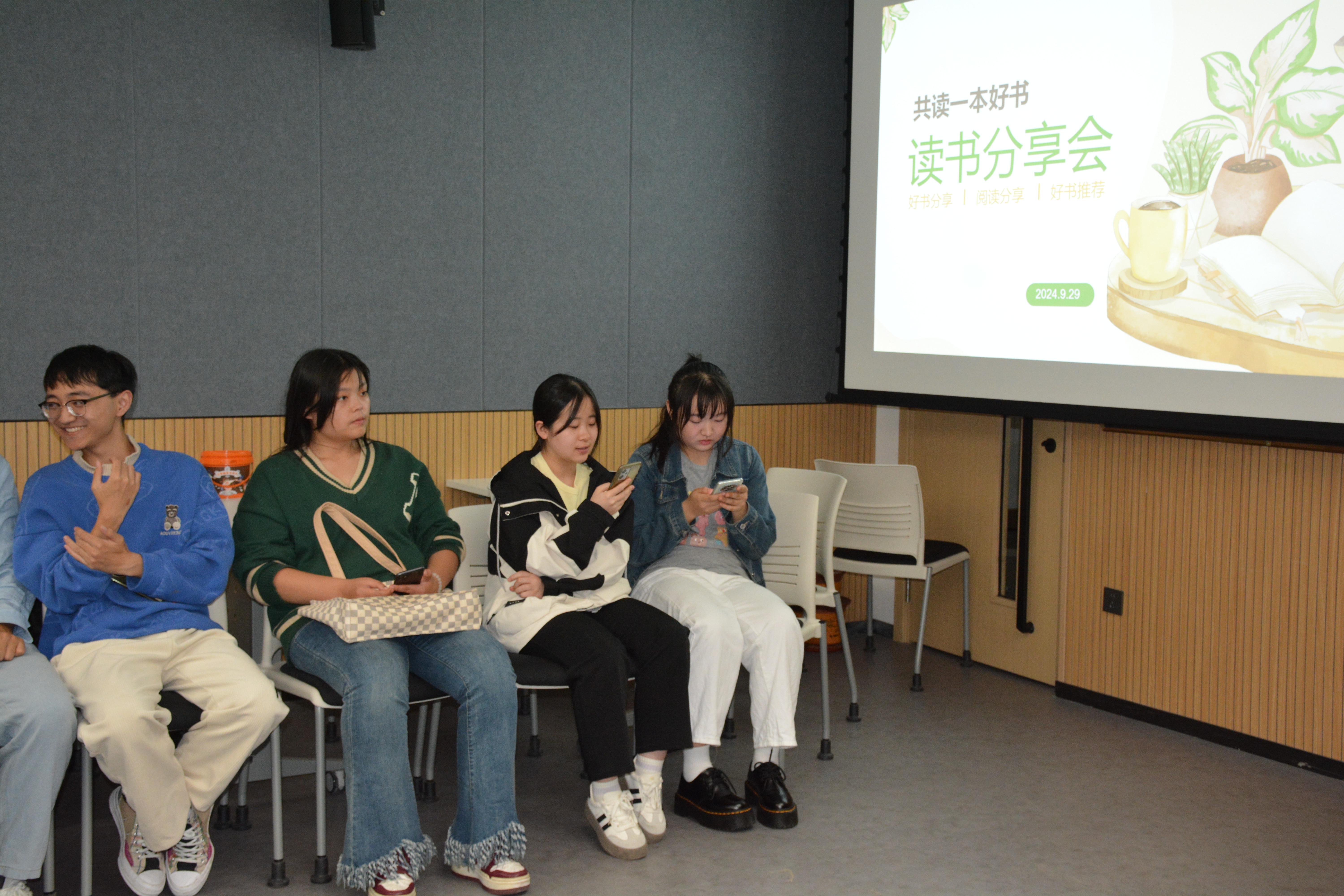 强国复兴有我,青春助力阅读。为深入贯彻落实党的二十大精神和习近平总书记加强阅读引领、涵育阅读风尚的精神,深化全民阅读活动,形成“爱读书、读好书、善读书”的浓厚氛围,在“书香致远——每月共读一本书”活动反响良好,同学们读书热情高涨的背景之下,意昂研究生会于9月29日下午6点在科学讲堂105教室开展了“共读一本好书”读书分享会活动(第四期),往期“书香致远——每月共读一本书”活动(《乡土中国》《我们仨》)中曾提交读书心得的20名在读研究生参与了此次分享,本次分享会活动由2024级硕士研究生刘淑艳主持。
