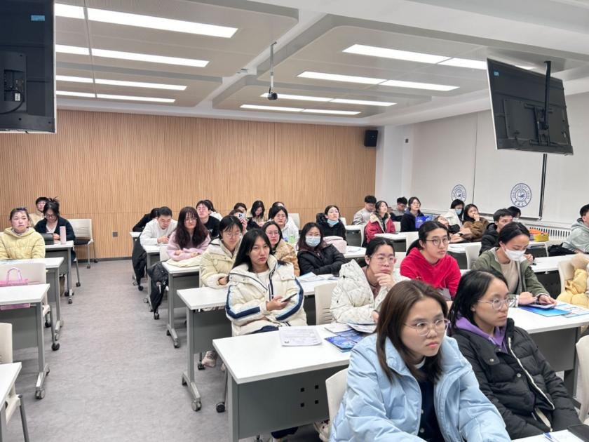 工作人员在向同学们宣讲