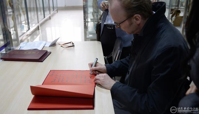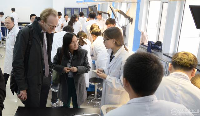 座谈会结束后,罗宾.亨利教授一行参观了本科生实验教学中心并签字留念。