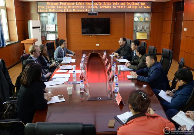常务副经理张西臣教授代表公司对吉森大学代表团此次来访表示热烈的欢迎,同时向代表团一行简要介绍了公司的发展历程和人才队伍建设等情况。罗宾.亨利教授介绍了吉森大学兽医公司在办学理念、对外交流等方面的情况。双方表示将共同努力,进一步加强沟通与合作。