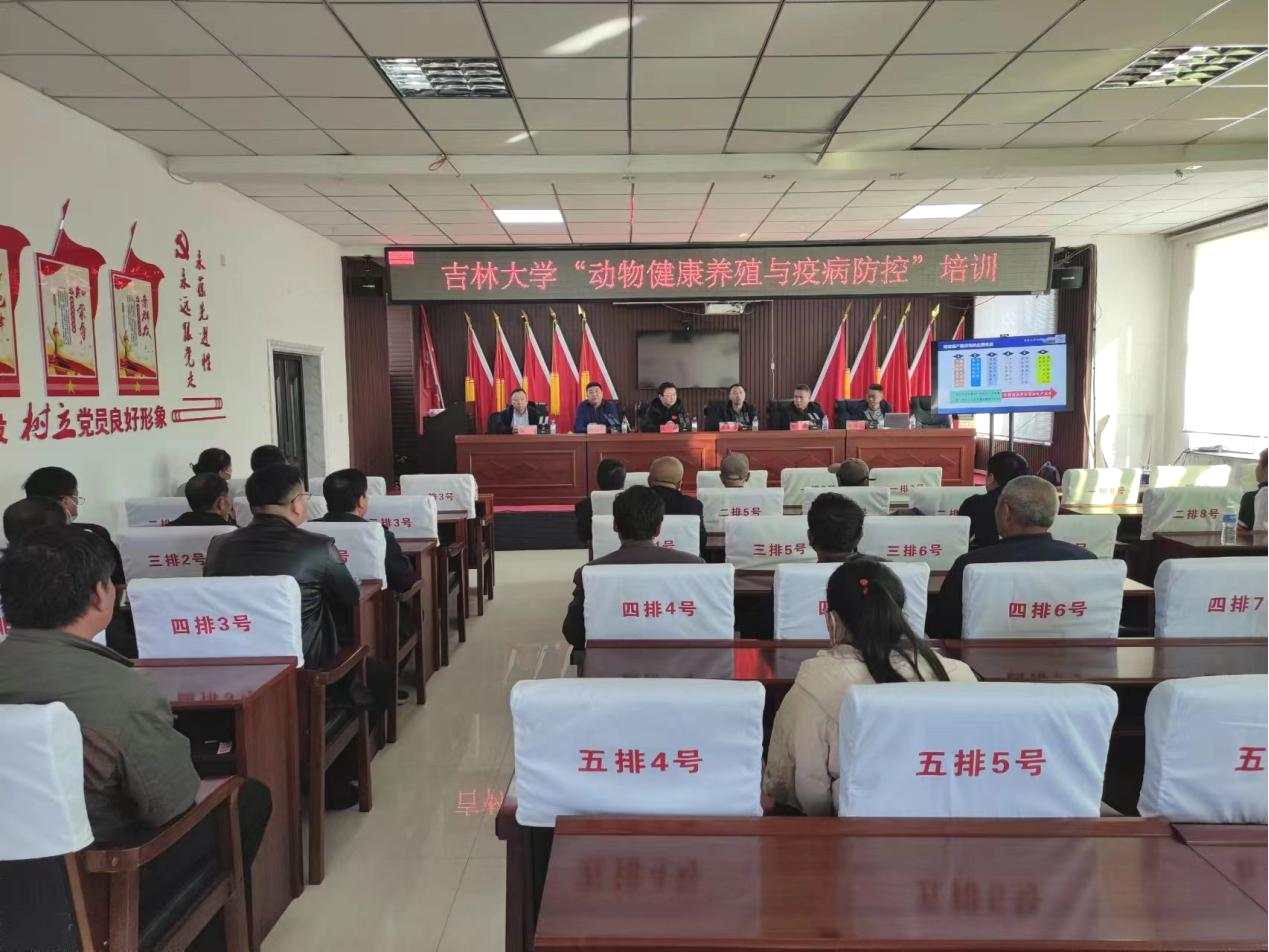 10月22-23日,公司党委书记饶家辉、副书记秦明、中国畜牧兽医学会兽医病理学分会理事长高丰、吉林省生猪产业体系岗位专家郭昌明一行前往公司定点帮扶县通榆新华镇开展“动物健康养殖与疫病防控”专题培训。意昂体育农业实验基地主任、通榆县副县长田进,新华镇党委书记薛炳龙、副镇长马丽、桑树村党支部书记魏振清陪同,全镇近50名养殖人员及兽医工作者参加培训。