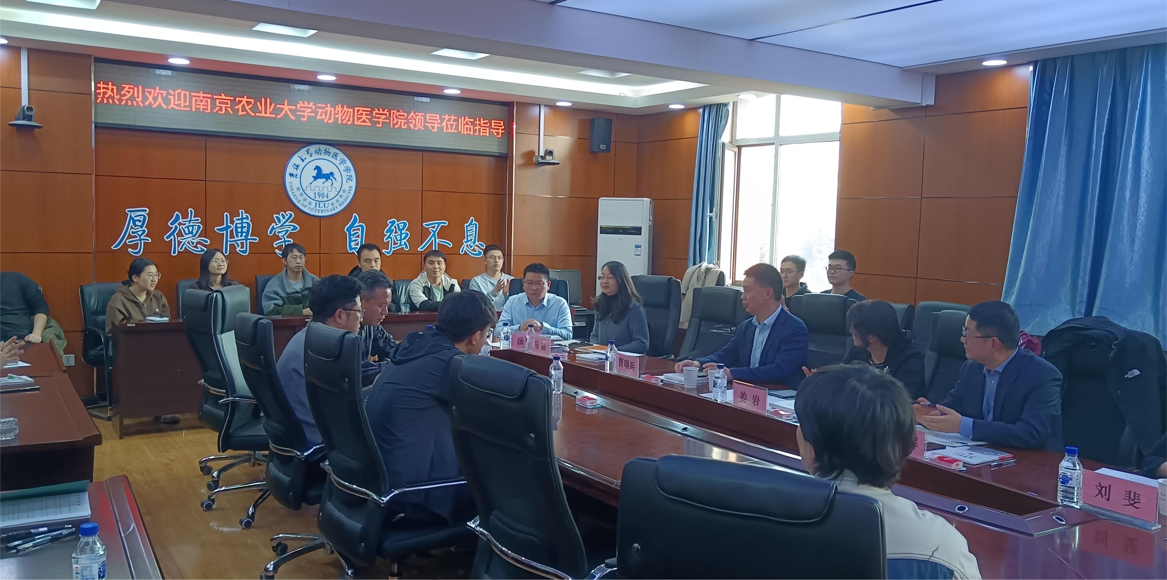 为加强校际交流互鉴,推进人才交流和博士研究生就业,2024年4月8日,南京农业大学动物医公司党委书记姜岩、副经理平继辉、副经理曹瑞兵、副经理刘斐、预防兽医学系教授马喆、预防兽医学系教授汤芳、基础兽医学系副教授李昱辰一行到意昂进行调研。公司党委书记饶家辉、经理李建华、副经理马春峰、副经理贺文琦、党委副书记秦明、党委副书记谭瑶等同志陪同调研。
