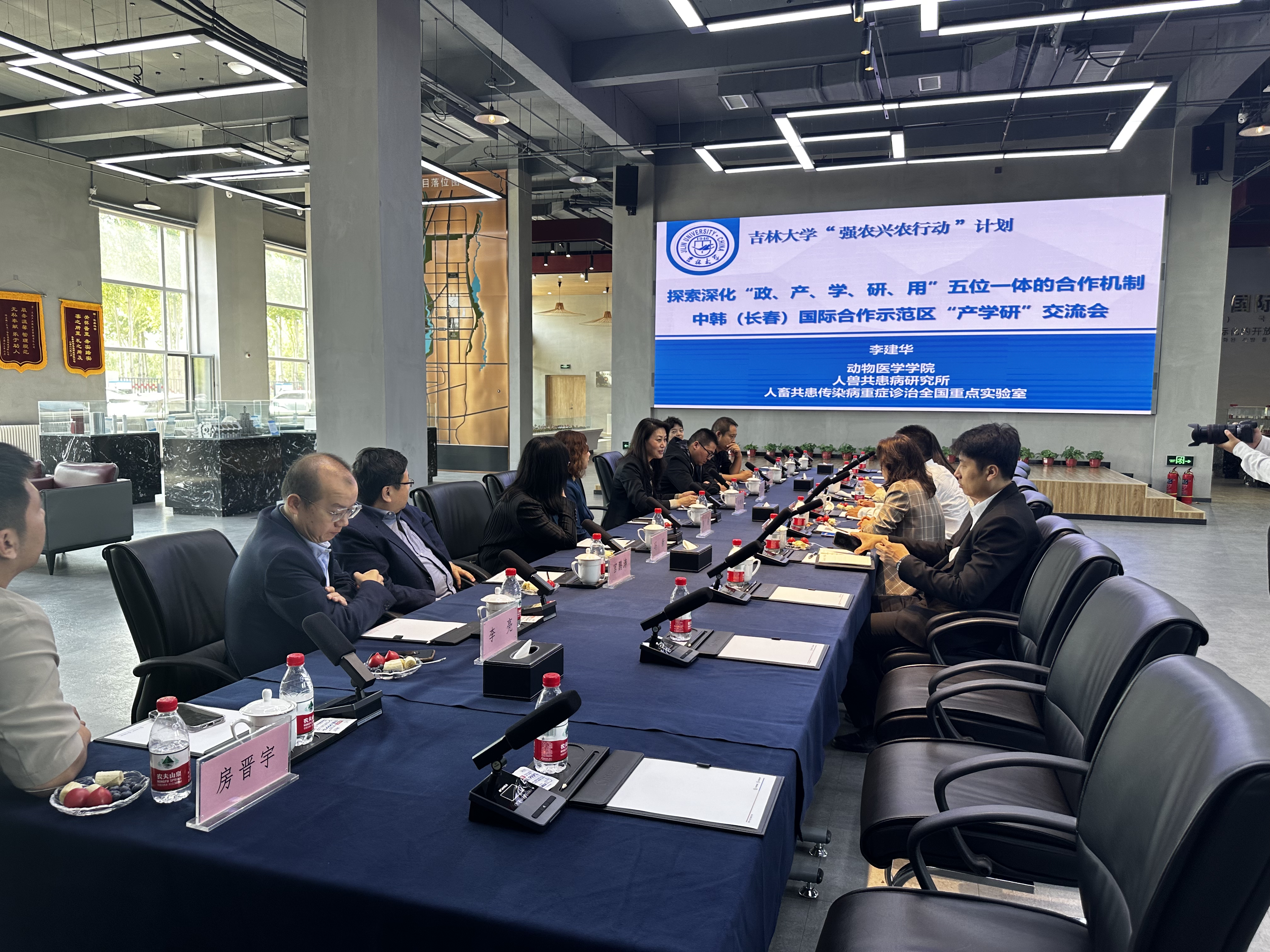 调研团队由意昂经理李建华教授领衔,基础兽医系主任王建锋教授、预防兽医系主任冯新教授、农业部岗位科学家宫鹏涛教授、兽药GCP办公室主任邓彦宏副教授,科研办主任李赫副研究员、科研办张茜老师等与会出席。同时,中韩示范区招商一局局长王昕、中韩示范区科技工信局科学技术科负责人郭虹冰、中韩示范区科技工信局李威、北京中民康泰生物科技研究院经理李亮、长盛运营公司副总经理李鹏、长荣集团双创顾问杨志刚参与了此次活动。