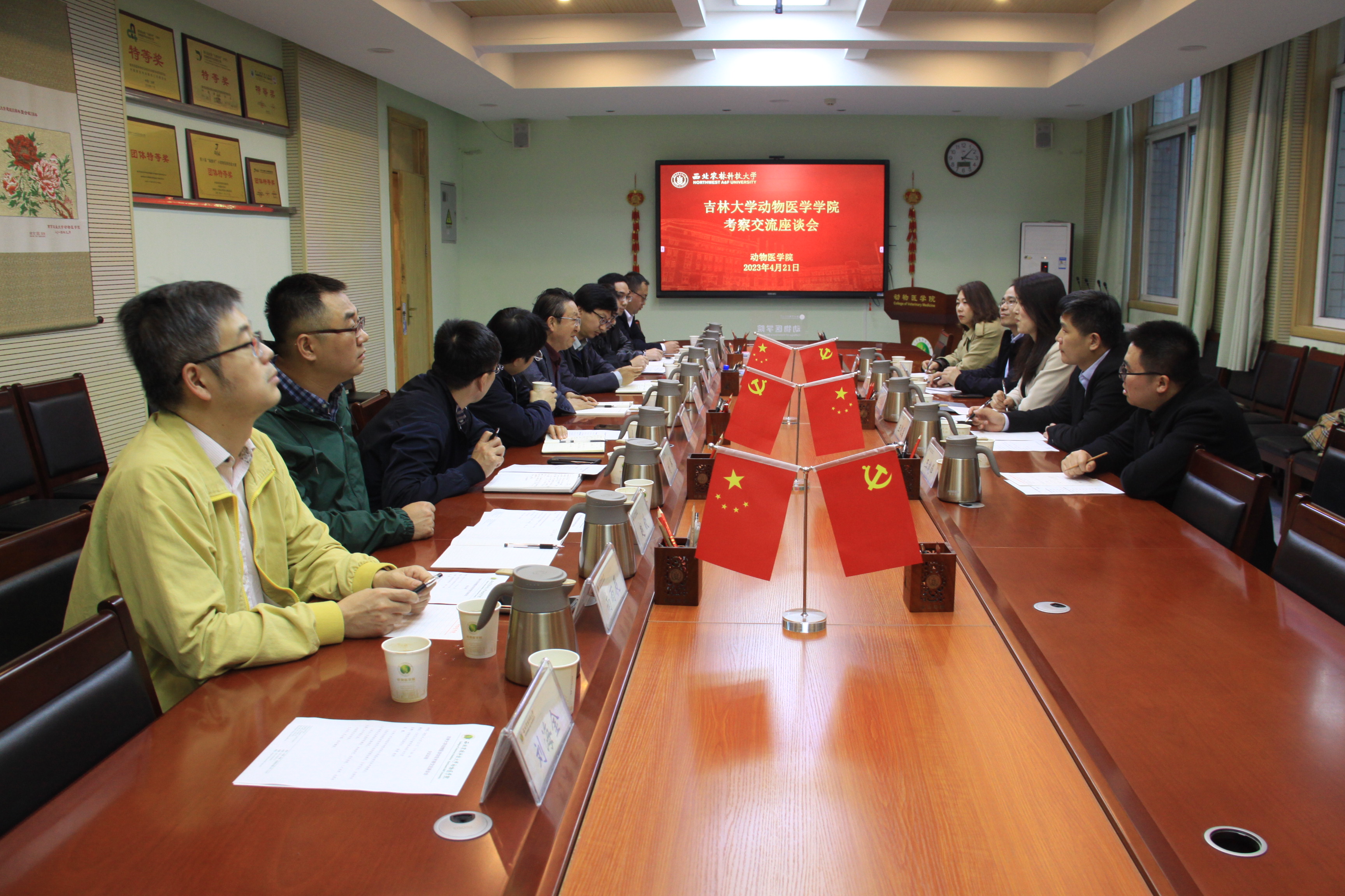 4月21日,西北农林科技大学动物医公司杨增岐经理代表公司对李建华一行表示欢迎。李建华副经理、杨增岐经理分别介绍了两个公司的发展历史、团队建设、教学科研以及国际交流等方面基本情况,双方就公司产品、人才培养、团队队伍建设、国际交流合作、平台建设与科技成果转化等方面进行了深入交流和讨论。